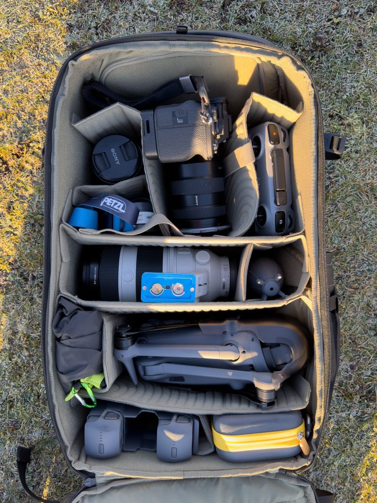 - Mavic 4 Pro, controller and 3 batteries – this drone is a beast and I’d normally have to carry it separately!