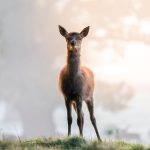 A lone baby deer at sunrise at Ashton Court, Bristol