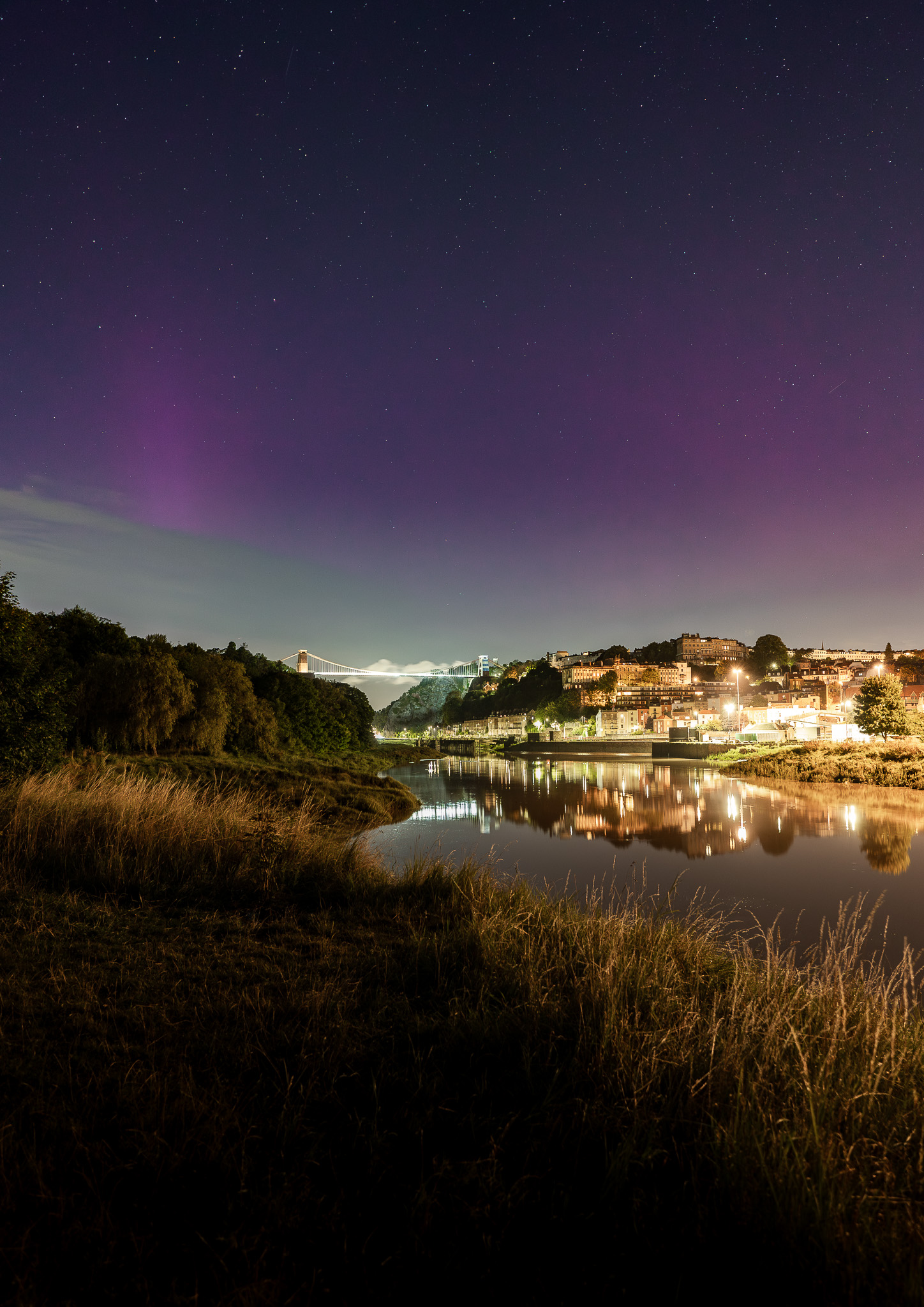 The Northern Lights / Aurora Borealis over Clifton Suspension Bridge in Bristol. Taken very late on Monday 12th August 2024. A large aurora was on display across the UK that night, and I had thought of going to a dark sky location. However I have always had an image in my head of the northern lights over the suspension bridge – something that has never been photographed before. I headed down to Cumberland Basin and couldn’t believe my luck when the pink/purple colours showed up on the back of the camera. I never thought I would witness the aurora over Bristol!