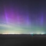 The Northern Lights or aurora borealis above Clevedon Pier, early 2023.