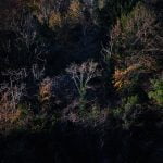 The first light hits the side of the Avon Gorge, Bristol, on an Autumn morning.